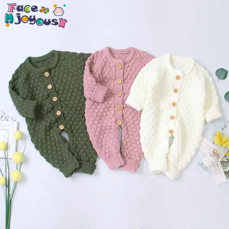 Nouveau Ne Bebe Vetements Bebe Garcon Fille Printemps Bouton Pull Tricote Combinaison Bebe Barboteuse Tenues Chaudes Bebe Fille Vetements Enfant En Bas Age Aliexpress