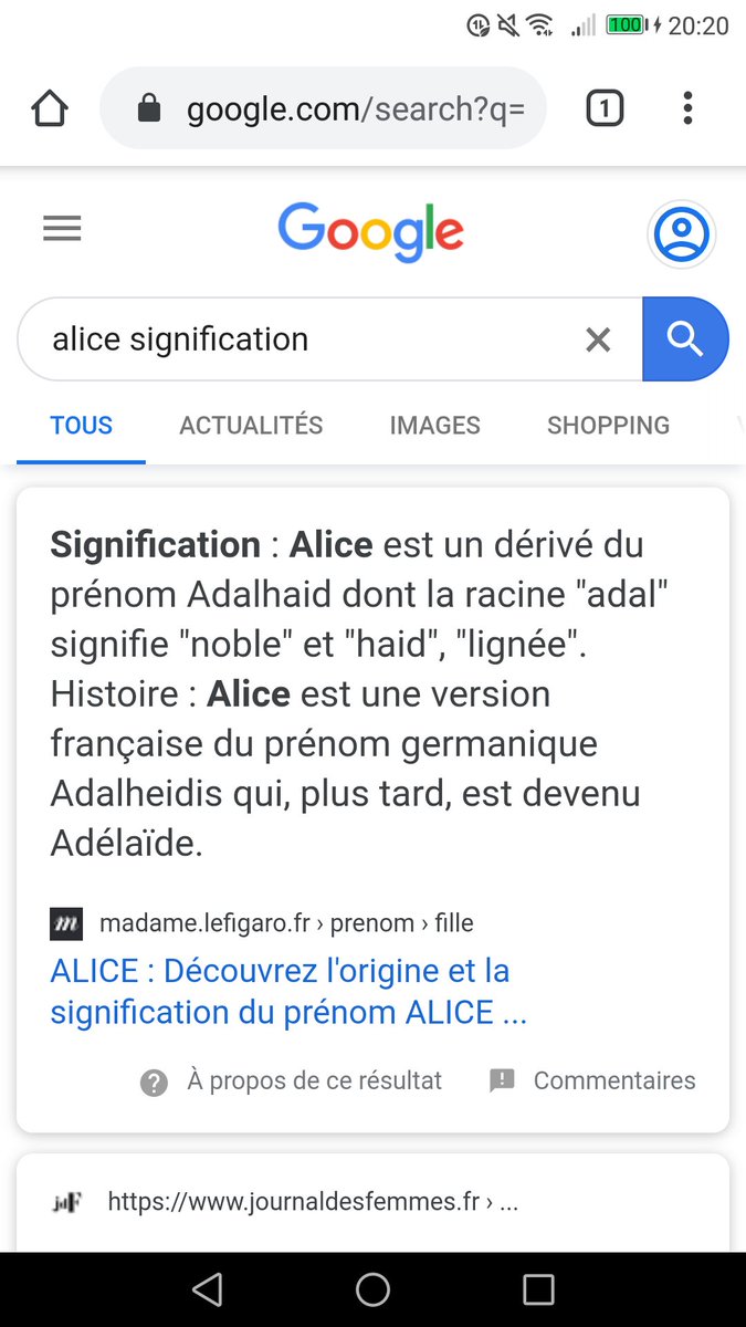 Tout sur le prénom Alice découvrez son origine, combien de Alice sont nés en France chaque année, ou qui sont les Alice célèbres. Origines d’Alice Le prénom Alice possède des origines allemandes, car il s’agit de la traduction française du prénom Adélaïde qui se compose luimême des mots « Adal » et « Hild », qui veulent respectivement dire « noble » et « combat »Il est donc possible de traduire Alice par « noble combattante »Ce prénom a su s’implanter en France il y a déjà de très. 3 Moi c'est Alice Ouai j'adore ce prénom , i love Alice !!!!.