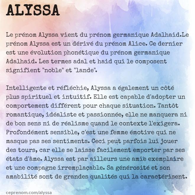 Signification Et Personnalite Du Prenom Alyssa