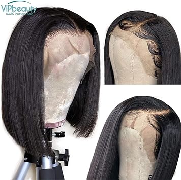 Vipbeauty Bob Perruque Femme Vrai Cheveux Courts Bresiliens Naturelle Cheveux Humains Vierges Lisse Lace Front Noir Naturel 10 Pouces Amazon Fr Beaute Et Parfum