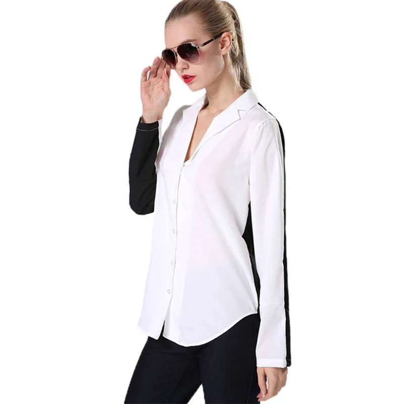 Femmes Chemise Chemisier Blanc Noir Couleur Manches Longues Patchwork Blouse V Cou Sexy Office Lady Split Femmes Chemisier Marque Oamor Aliexpress