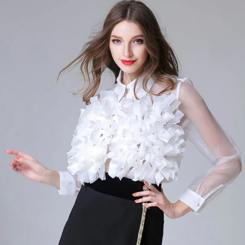 Appliques Organza Chemisier En Mousseline En Soie Originale Shirt Tops Femmes Chemisier Blanc Noir Translucide A Manches Longues Blouse 17 Aliexpress