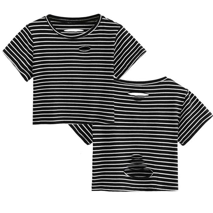 Femmes Trou A Manches Courtes Chemise Blanche A Rayures Casual Top Ample Chemisier En Coton Noir Noir Achat Vente Chemisier Blouse Cdiscount