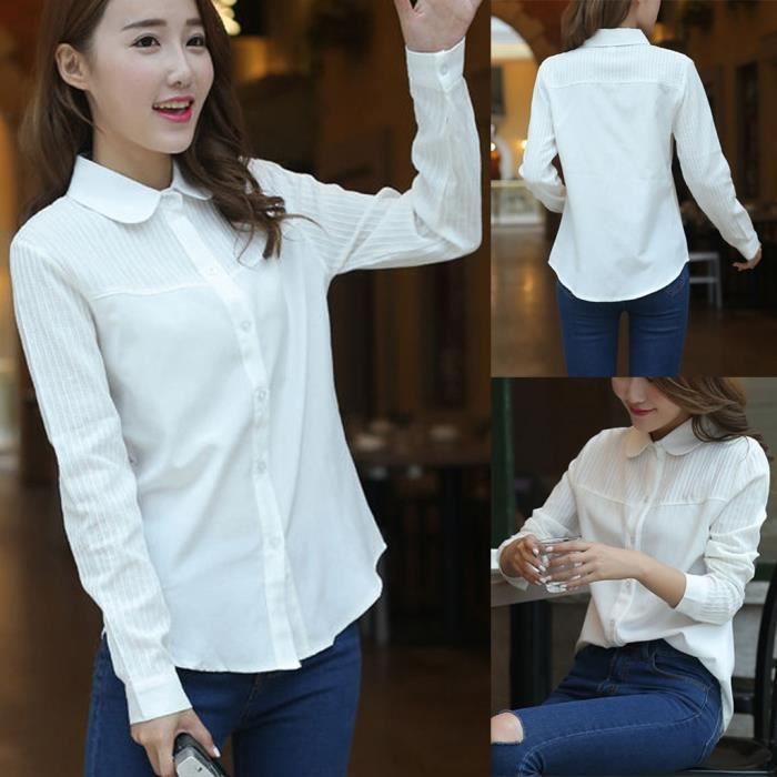 Inhzoy Femme Fille Chemisier Blanc A Manches Longues Col Rabattu Avec Ruban Uniforme Etudiant Vetement De Travail Casual Haut Top Quotidien Clubwear S Xxl Amazon Fr Vetements Et Accessoires