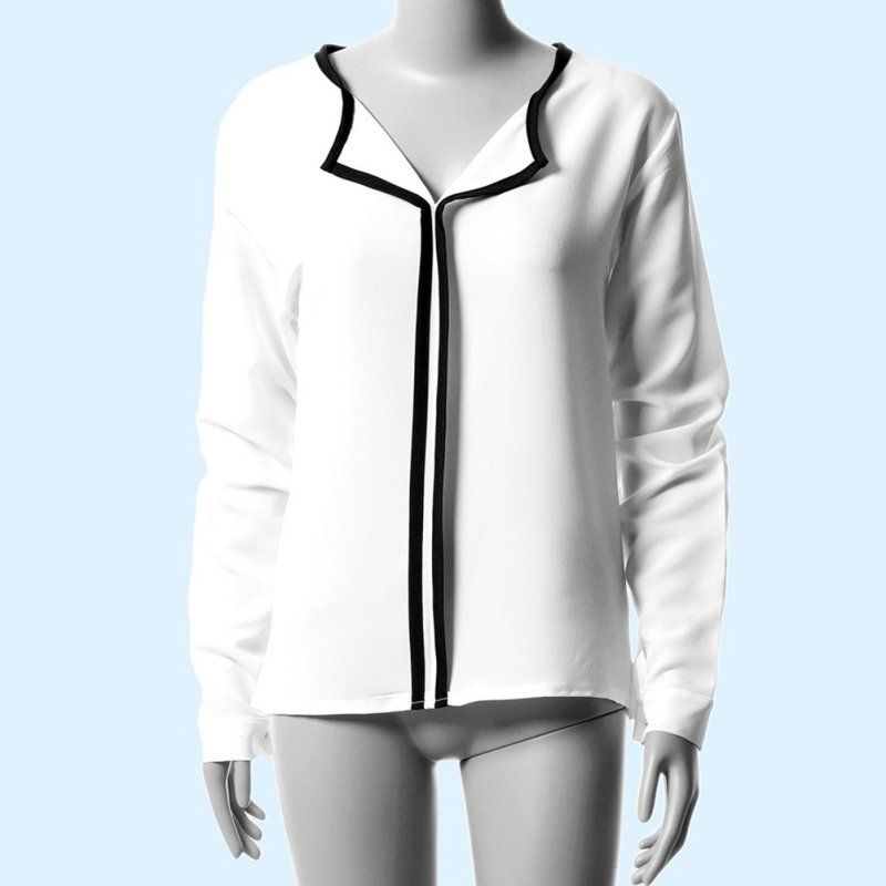 Acheter Mode Femme Casual Chemise Blanche A Manches Longues Cote Noir Chemisier En Mousseline De Soie Col En V Chemises De Travail Des Femmes De 6 96 Du Pinkcolor Dhgate Com