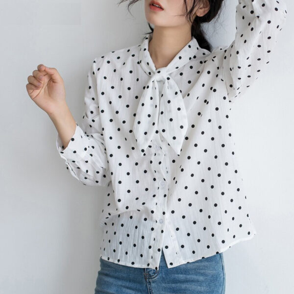 Chemisier A Pois Col En V Manches Longues Mode Blanc Noir Chemisiers Hauts