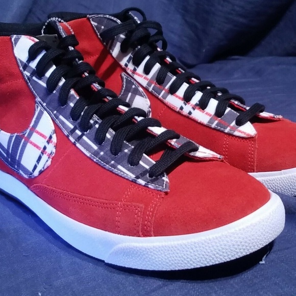Nike Ben Simmons Blazer Mid Prm Shoes Red Suede Plaid Size 9 5 Ebay