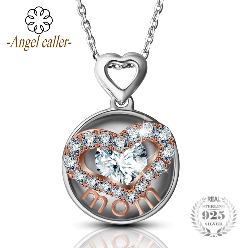 Ange Appelant 925 Argent Battant Coeur Maman Pendentif Collier Cristal Clair Collier Femme Cou Chaine Pour La Fete Des Meres Cadeau Cyd040 Aliexpress
