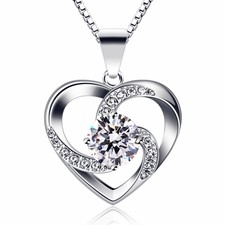 Collier Femme Argent 925 En Swarovski Zirconium Cubique Pendentif Coeur Amour Ca Ebay