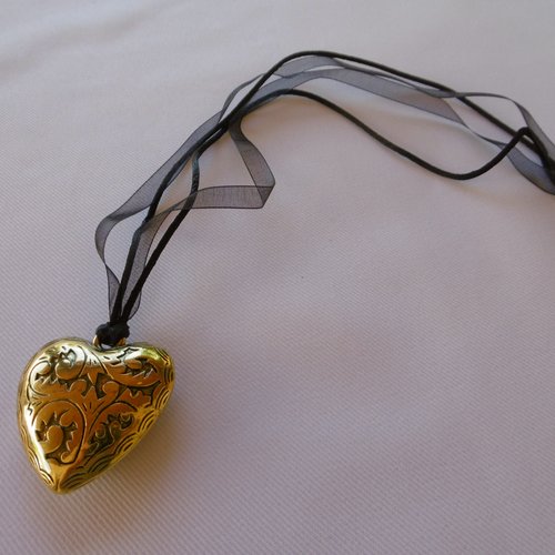 Collier Pendentif Femme Cœur Dore Fil De Soie Organza Noir Collier Femme Un Grand Marche