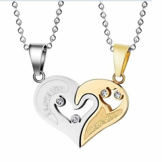 Jewelrywe Bijoux Pendentif Collier Homme Et Femme Appariement I Love You Coeur Trefle A Quatre Feuilles Acier Inoxydable Fantaisie Couleur Argent Or Longueur 55cm 50cm 2 Pcs Avec Sac Cadeau