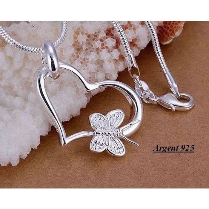 Collier Chaine Et Pendentif Coeur Et Papillon Femme Argent 925 Achat Vente Sautoir Et Collier Collier Femme Pendentif Cœu Argent Argente Soldes Sur Cdiscount Des Le Janvier