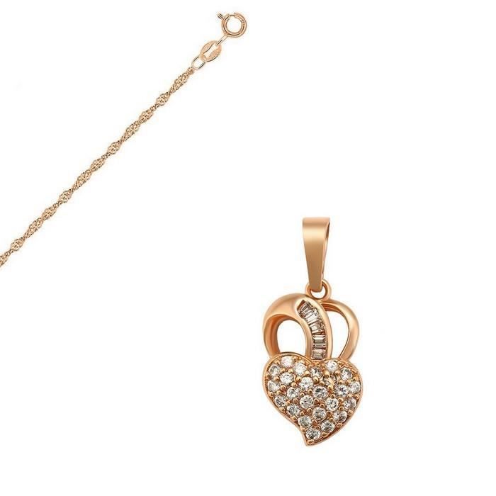 Ensemble Collier Et Pendentif Pour Femme Coeur En Plaque Or Avec Brillants Neuf Ebay