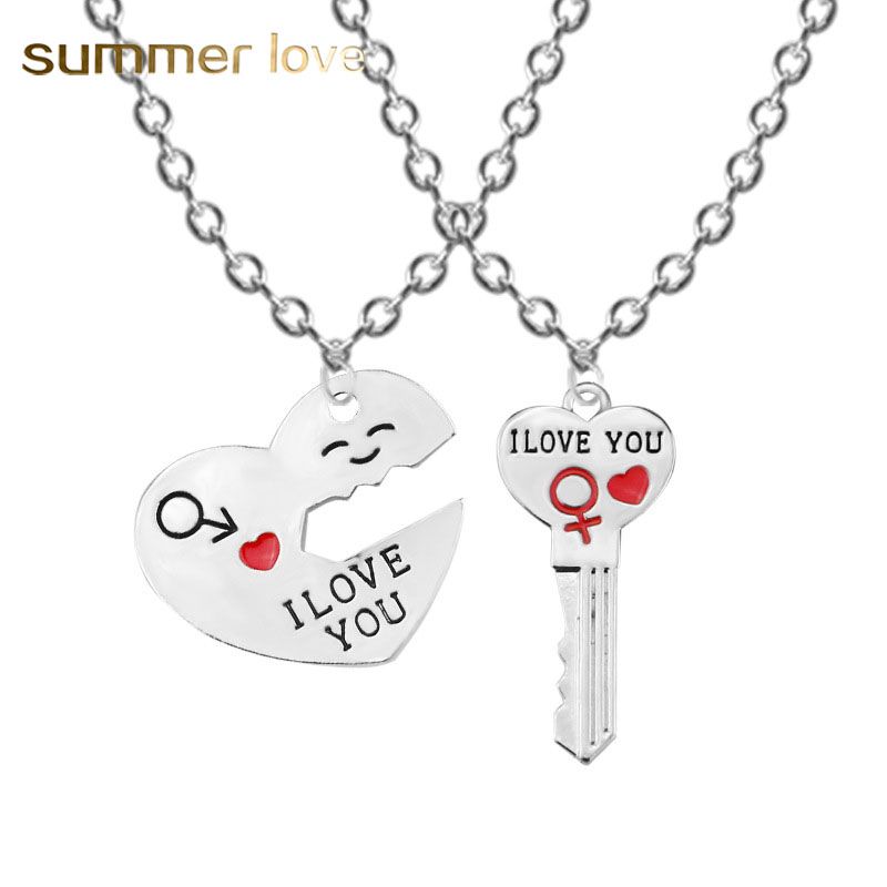 Acheter Je Taime Couple Collier Pour Femme Coeur Cle Charme Pendentif Collier Declaration Bijoux Ensemble Simle Romantique Amoureux Cadeau Porte Cles Porte Cles De 0 96 Du Klfashion Dhgate Com