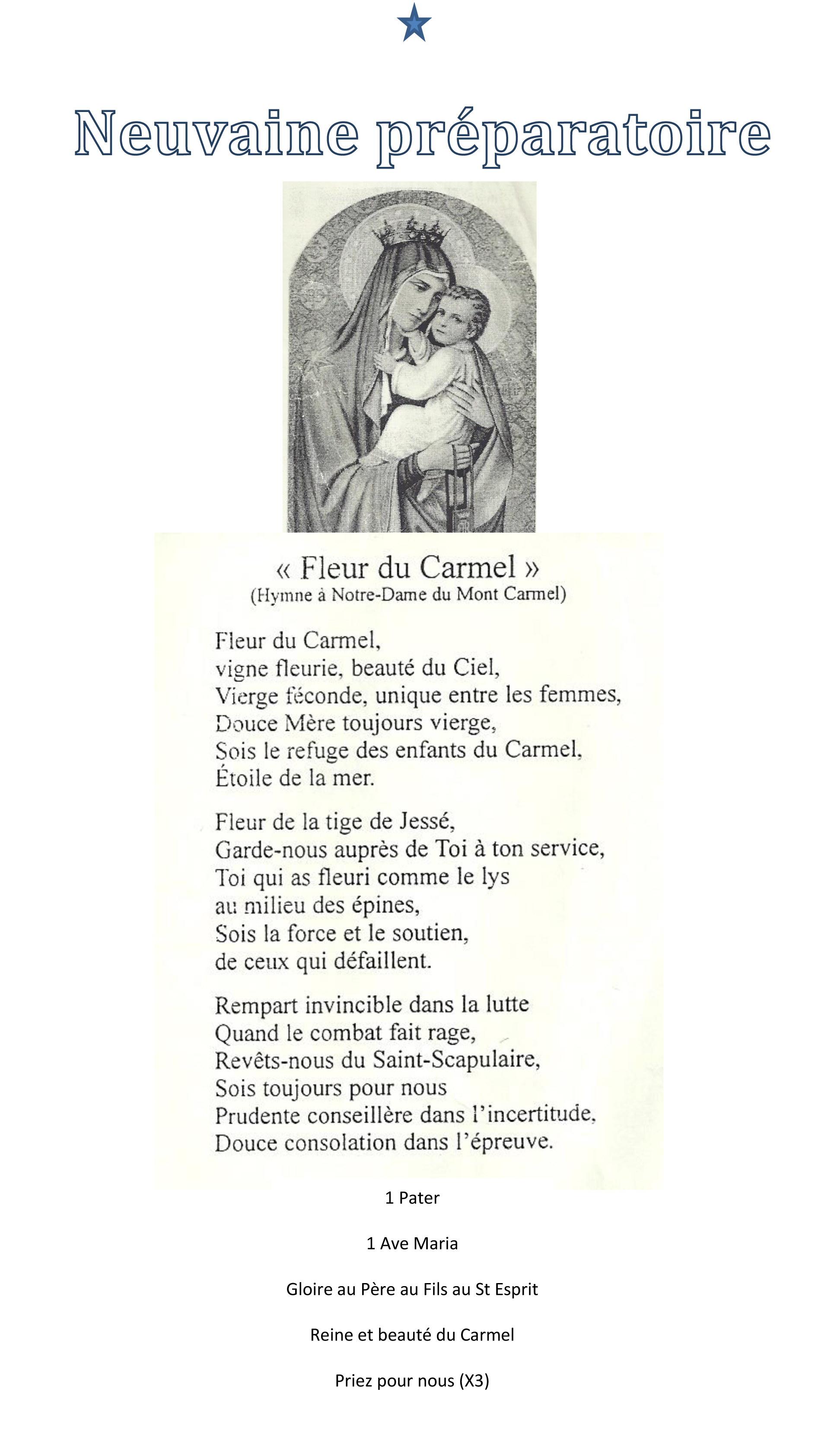 Neuvaine Notre Dame Du Mont Carmel 8 Juillet Au 16 Juillet 18