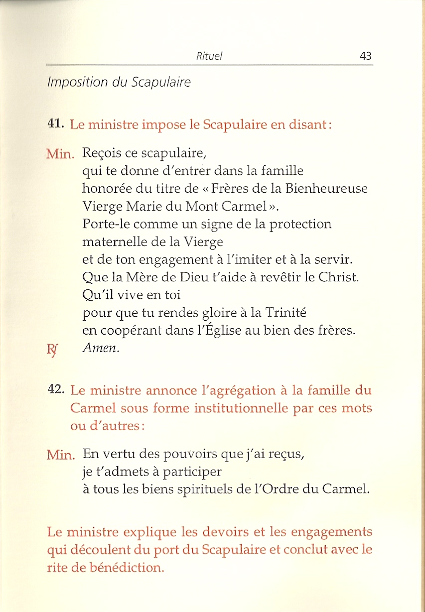 Rituel D Imposition Du Scapulaire Brun Du Mont Carmel En Francais Approuve Par La S C Pour Le Culte Divin En 1996