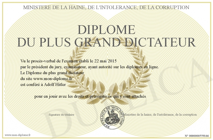 Diplome Du Plus Grand Dictateur