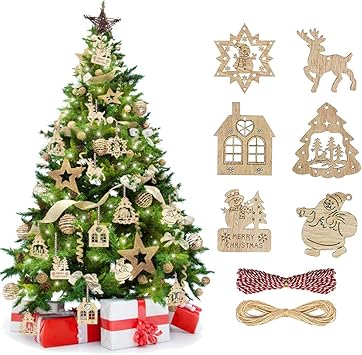 Tancuder 60pcs Decoration En Bois Pour Sapin De Noel 6 Styles Suspension Noel Bois Arbre De