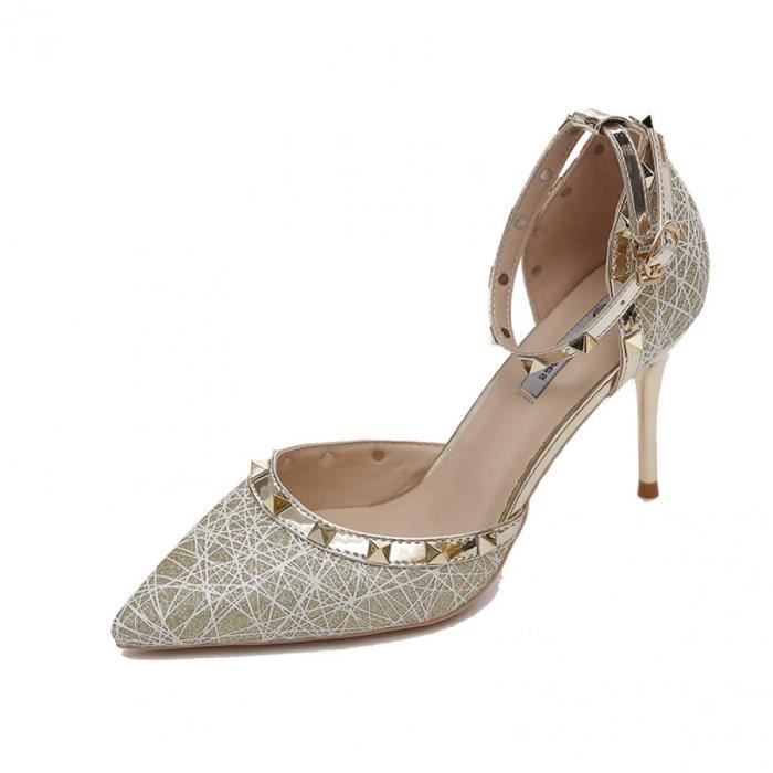 Escarpins A Bride Cheville En Cuir Femme Aiguille A Finitions Metallisees Et A Ornements Mode Talons Hauts Lanieres Mariage Ballroom Jaune Achat Vente Escarpin Cdiscount