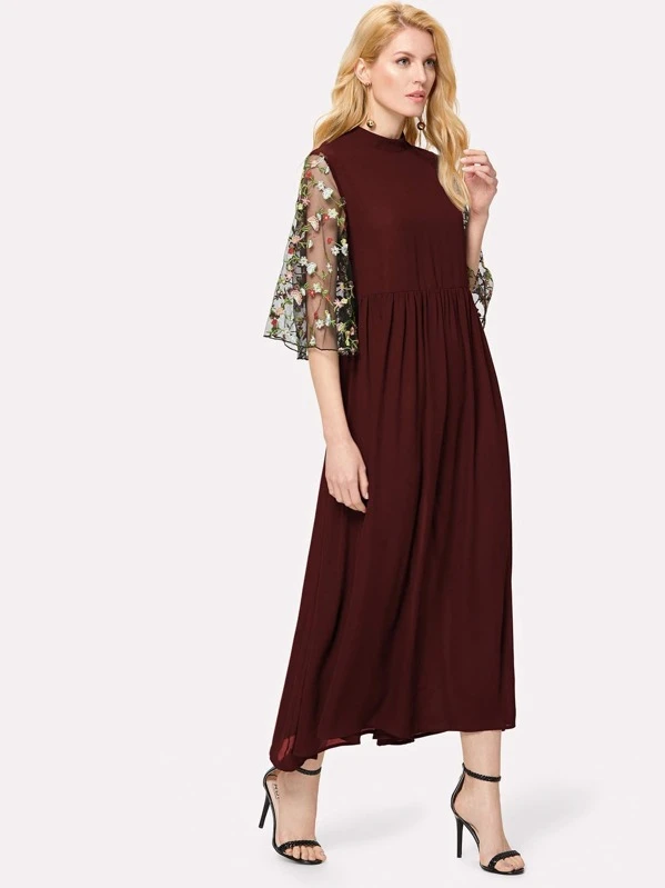 Robe Longue A Lacets Avec Fleur Brodee Mode En Ligne Shein France