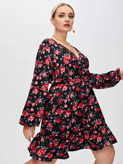 Grande Taille Robe Portefeuille Imprimee Fleur A Manche Longue Mode En Ligne Shein France