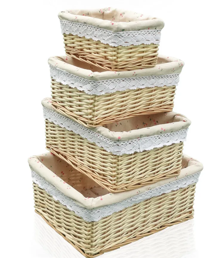 Décoration Rangement déco Panier Lot De 4 Paniers De Rangement Osier Rectangulaire. La Vannerie d'Aujourd'hui, grossiste en paniers en osier et rotin Ce panier en osier et tissu écru est idéal pour le transport ou pour le rangement de produits Ces différentes dimensions conviendront à tous et vous serez séduits par la solidité et l'esthétique de l'osier Son tissu écru finit le produit et peut être enlevé. Corbeille et boîte de rangement pour organiser votre intérieur Besoin d’un bon rangement?.