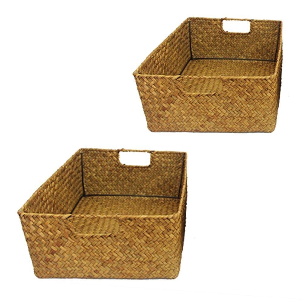 Lot De 2 Panier De Rangement En Osier Etagere Tiroir Rectangulaire Jacinthe D Eau Naturel Amazon Fr Cuisine Maison