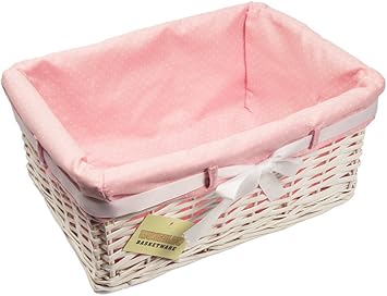 1 X Medium Woodluv Rectangulaire Panier De Rangement En Osier De Saule Blanc Avec Doublure A Points Rose Amazon Fr Cuisine Maison