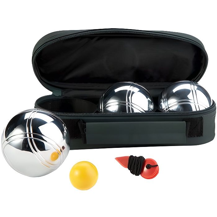 Mais comme la couleur ne fait pas tout, nos boules de pétanque de compétition ont chacune leur spécificité Soleil en inox dans la masse, Match en acier au carbone allié, ATX en inox spécial toutes les déclinaisons sont bonnes !. Il existe des boules pour une pratique en compétition et des boules destinées à une pratique en loisir !. Boule chromée et striée de 7g chaqu'une avec cochonnet et mesureur de distrance.