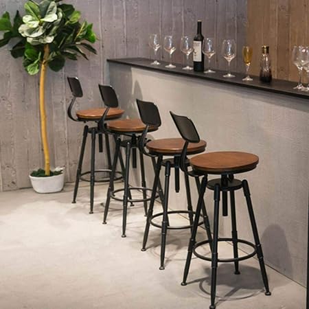 Kingsaid Chaise De Bar Tabouret De Bar Haut En Bois Et Metal Industriel Avec Dossier Pour Cuisine Vintage Amazon Fr Cuisine Maison