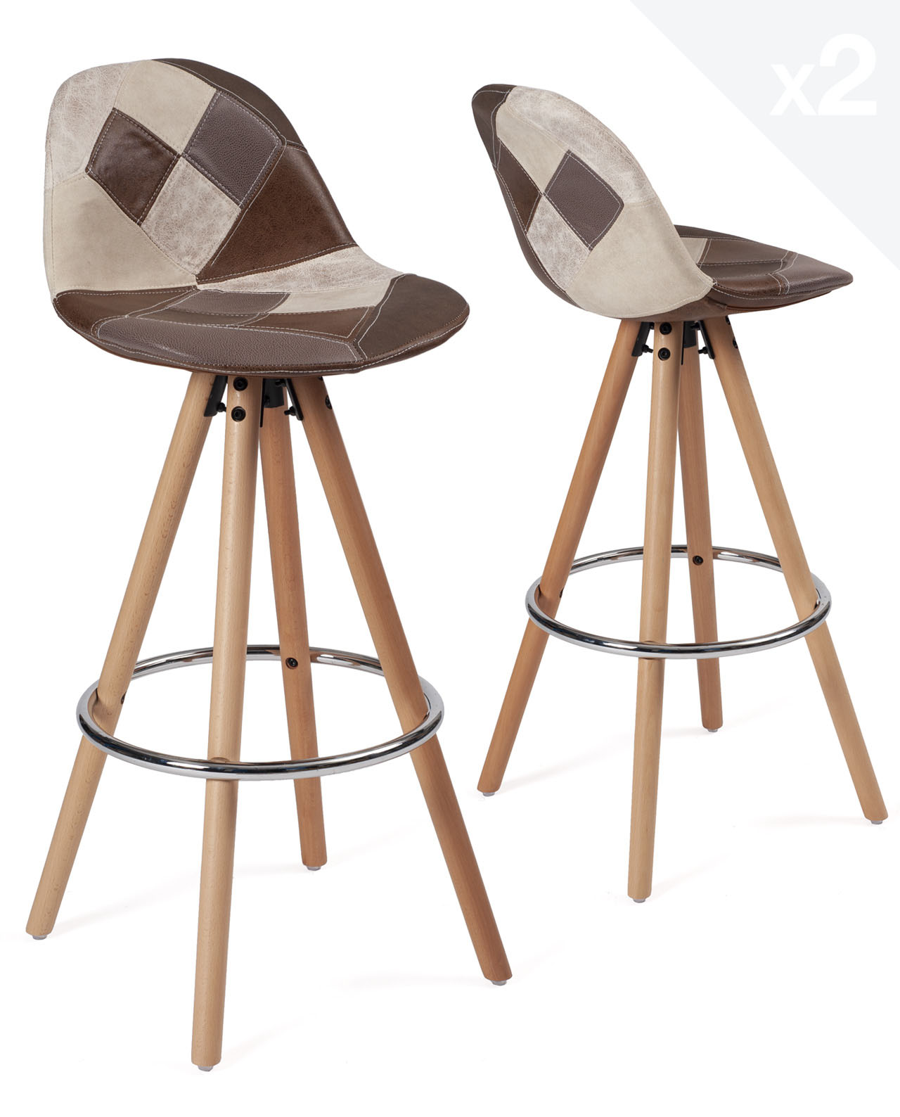 Tabouret De Bar Patchwork Pieds Bois Sana Lot De 2 Kayelles Com