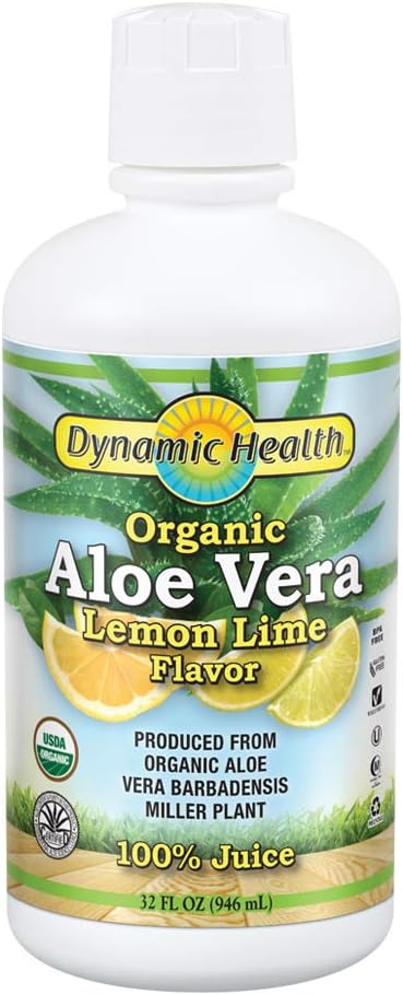 Amazon Com Dynamic Health Organic Aloe Vera Juice Lemon Lime Flavor No Added Sugar Artificial Color Or Sweeteners No Gluten Or Bpa 32oz 8serv Health Personal Care