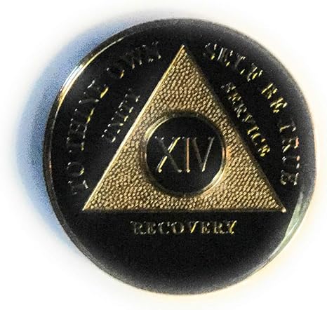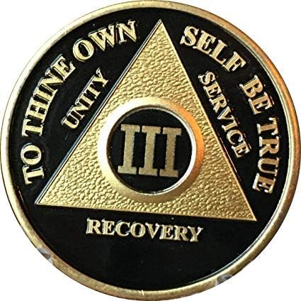 Amazon Com Recovery Line 15 Year Medallion Alcoholics Anonymous Black Gold Sobriety Chip Token Coin Home Kitchen
