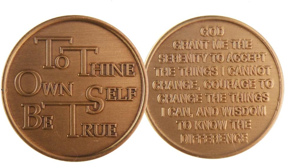 Amazon Com To Thine Ownself Be True Bronze Alcoholics Anonymous Aca Al Anon Sober Sobriety Affirmation Birthday Anniversary Desire Recovery Medallion Coin Chip By Generic Toys Games
