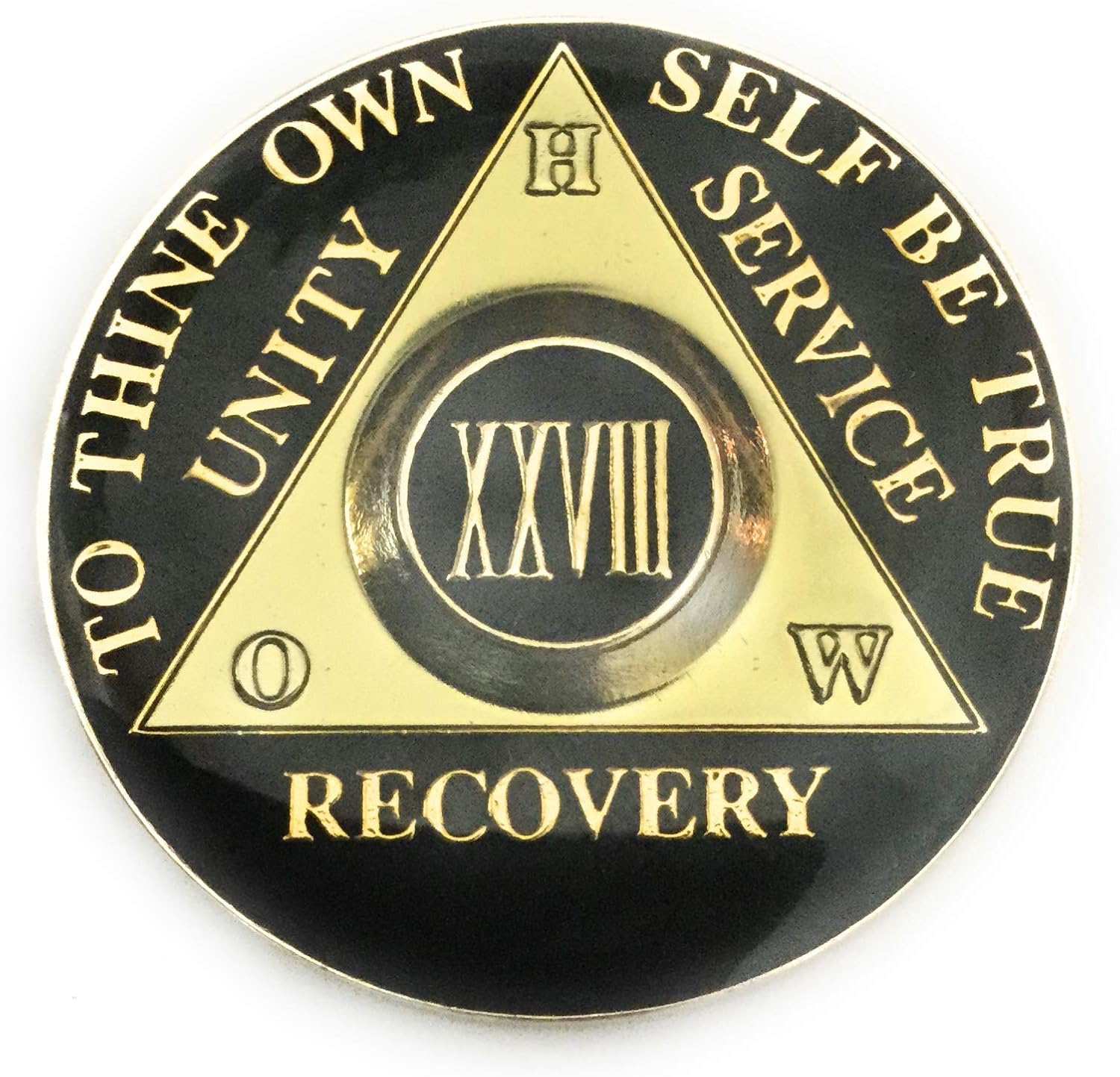 Amazon Com Recovery Line 28 Year Medallion Alcoholics Anonymous Black Gold Sobriety Chip Token Coin Home Kitchen