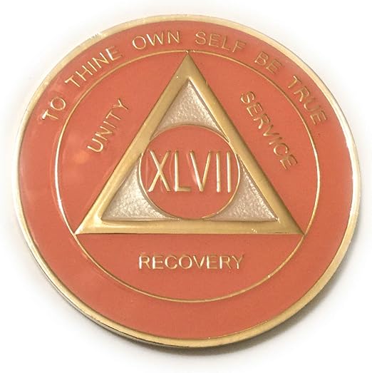 Amazon Com Recovery Line 47 Year Medallion Alcoholics Anonymous Pink White Gold Sobriety Chip Token Coin Home Kitchen