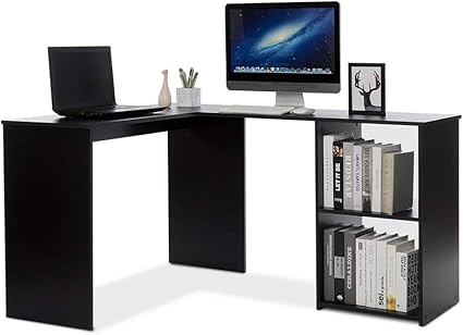 Mondeer Bureau D Angle Avec Rangement 2 Etageres Bois 108 L X 135 P X 73 H Cm Noir Amazon Fr Cuisine Maison