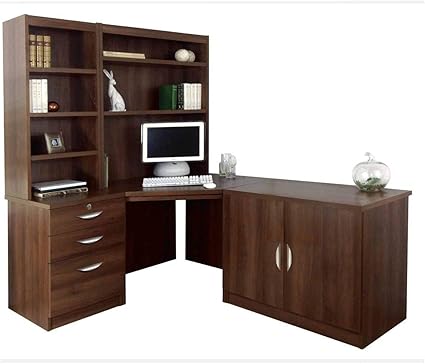 R Bureau D Angle Avec Etagere Couleur Noyer Amazon Fr Fournitures De Bureau