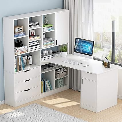 Jiaqi Bureau D Ordinateur En Forme De L Bureau D Angle Bureau A Domicile Avec Etageres Moderne Design Avec Etageres Et Tiroirs Bois Massif Table D Ordinateur Portable B Amazon Fr Cuisine Maison