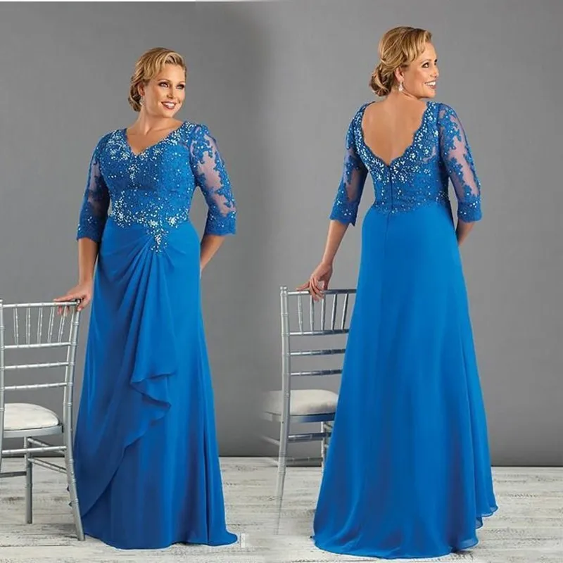 Royal Blue Long Mousseline Mere De La Mariee Robes 3 4 Manches Avec Sequin Perle Mere De Marie Robe De Mariee Grande Taille Aliexpress