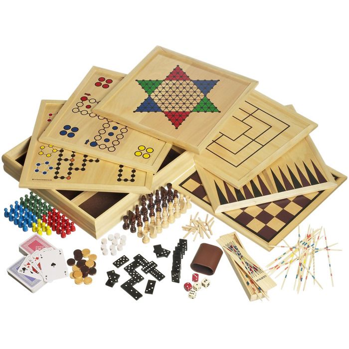 Coffret 100 Jeux De Societe Tradition En Bois Complet Oie Chevaux Dame