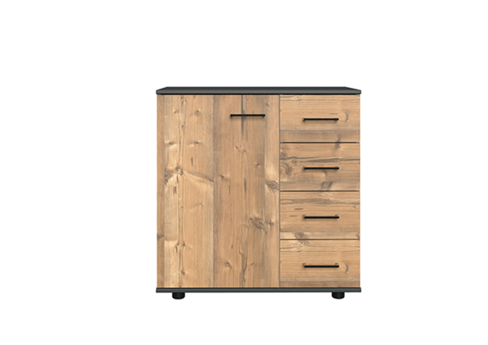 Commode 1 Porte 4 Tiroirs Anna Chambre A Coucher Silver Graphite Bois Graphite