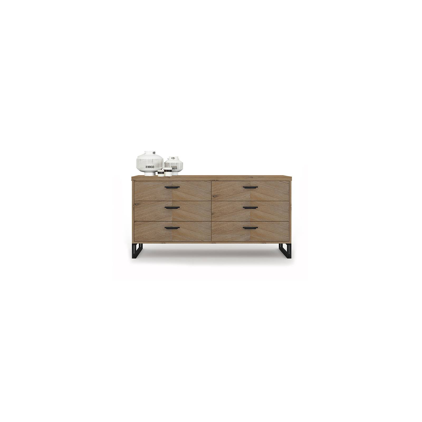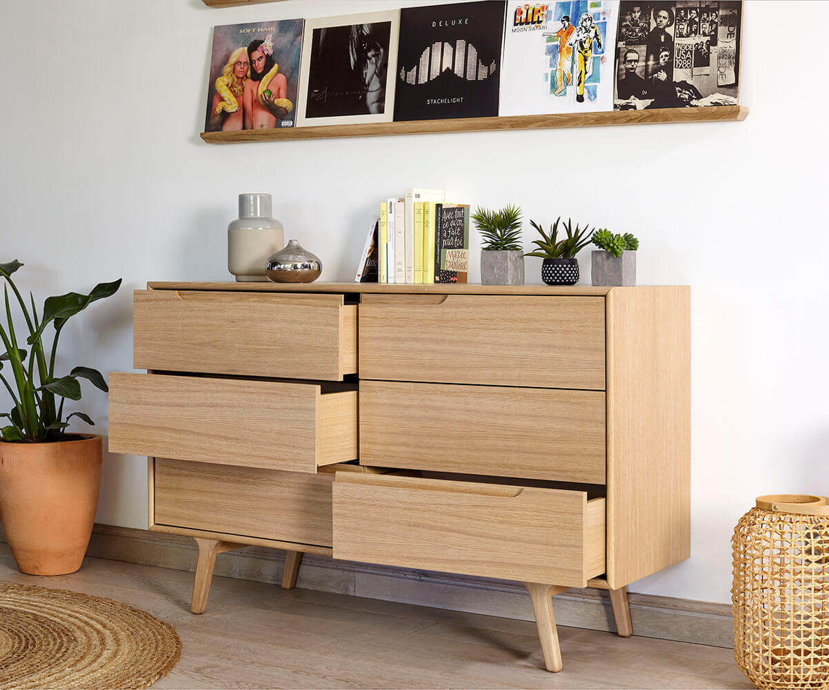 Commode Ado Volga 6 Tiroirs Plaque Chene Massif Style Scandinave