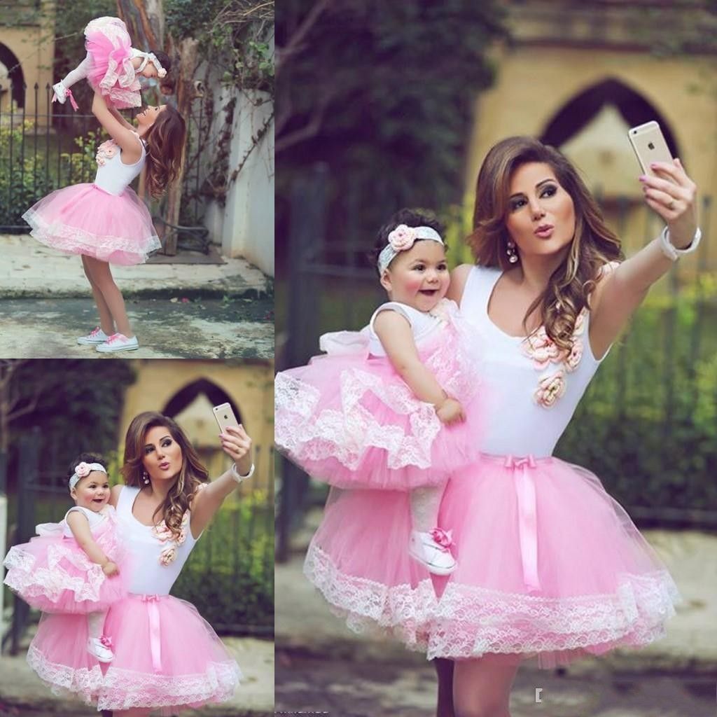Acheter Robes De Soiree Pour Le Mariage De Belle Mere Et Fille Rose Mignonne Robes De Filles De Fleur Courtes Tulle Ball Lace Edge Petites Robes Pagenat De 53 35 Du Alberta Dress