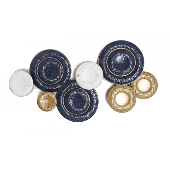 Decoration Murale Abstraite En Metal Disques Bleu Nuit Blanc Et Or
