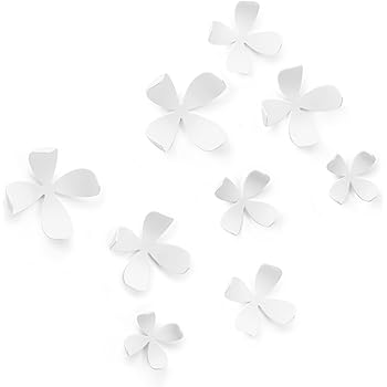 Umbra Wallflower Jeu De 10 Fleurs De Decoration Murale Wallflower En Plastique Moule Coloris Blanc Autocollant 5 Tailles Differentes Entre 6 4x6 4x2 5 Et 11 4x11 4x6cm Amazon Fr Cuisine Maison