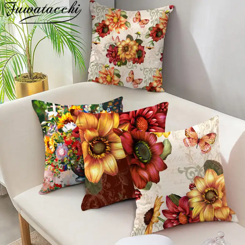 Fuwatacchi Housse De Coussin Avec Des Fleurs Colorees Taie D Oreiller Decorative Pour Canape Voiture Salon 45x45cm Aliexpress