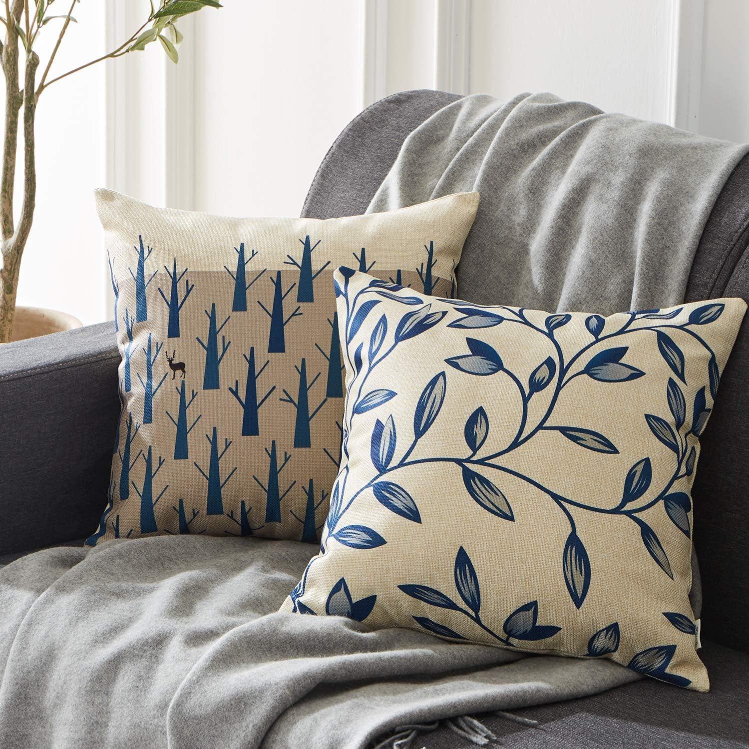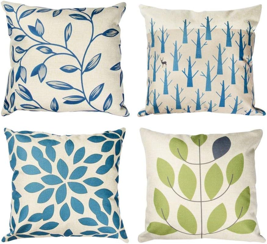 Topfinel 4 Housse Coussin 40x40 Cm Decoratif Canape Pour Salon En Coton Lin Housse De Coussins Chambre Imprimes Une Series De Plante Herbacee Housses De Coussin Cuisine Maison
