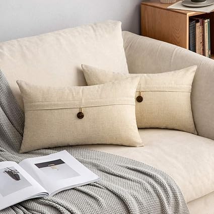 Miulee Lot De 2 Housses De Coussin En Lin Avec Bouton Decoratives Taie D Oreiller Tissu Lin Carrees Decor Coussins Decoratifs Pour Salon Canape Sofa Chambres Maison Blanc 30x50cm Amazon Fr Cuisine Maison
