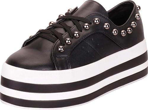 Cambridge Select Baskets A Lacets Style Retro Annees 90 Cloutees Rayees Noir Pu Noir 36 5 Eu Amazon Fr Chaussures Et Sacs